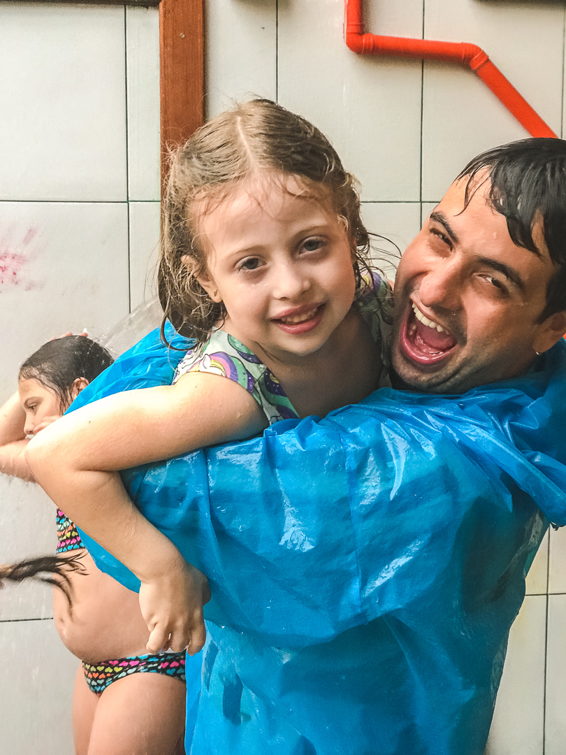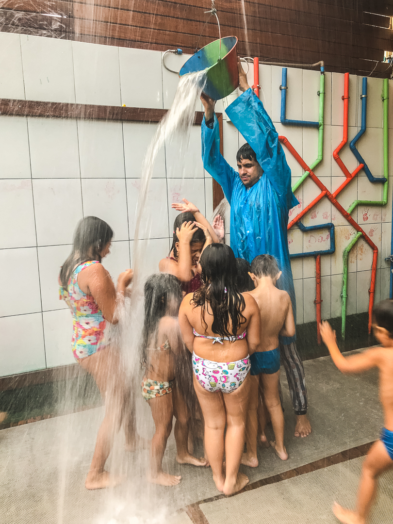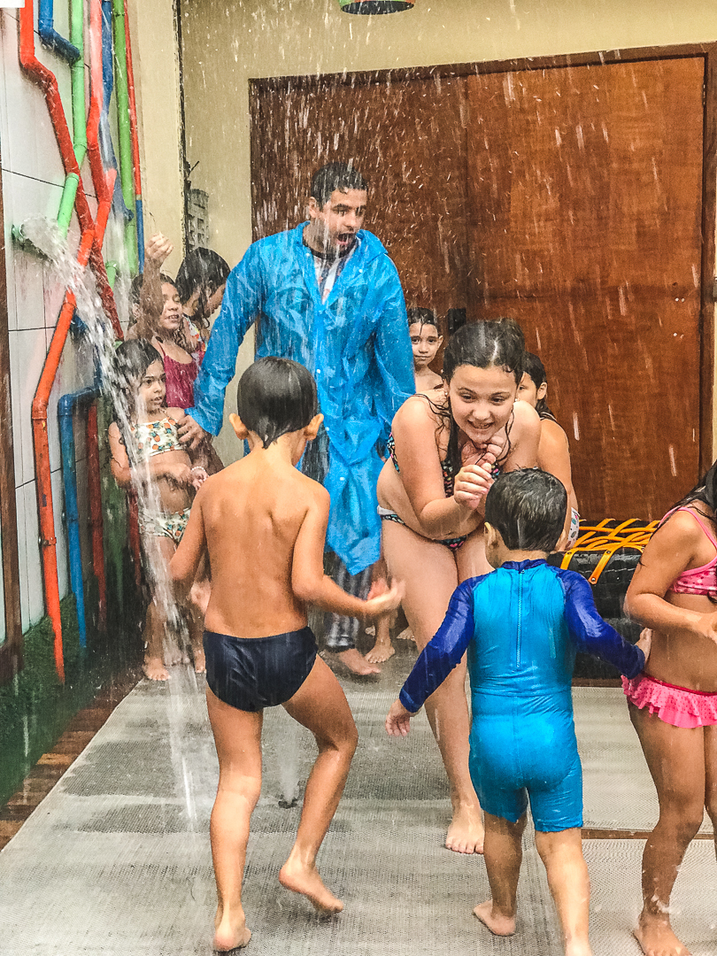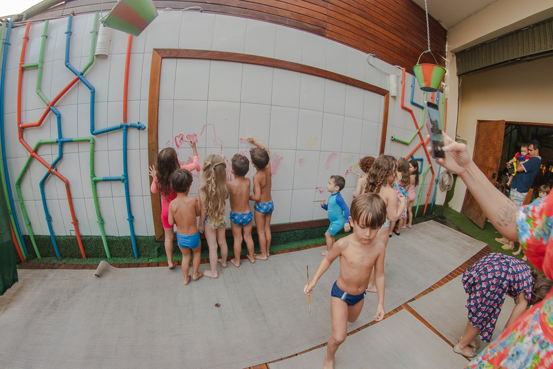 Ah!, depois do bolo rolou uma bagunça na água e eu que nem gosto de bagunça me meti no meio da criançada para fotografar esse momento bem de pertinho.