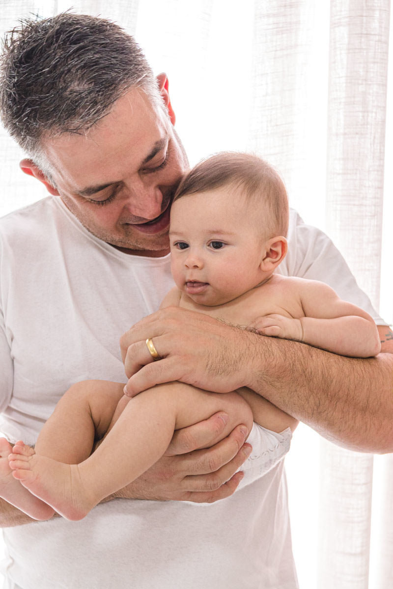 Me chamou muita atenção a forma como ele olha para o Mathias, os olhos dele chegam a brilhar! Sem contar com o cuidado e carinho, que também foi muito perceptível, principalmente quando estive na casa deles durante a semana para ajuda-los na escolha das fotos. Muito bom ver que cada vez mais os homens estão se empenhando em fazer a sua parte no dia a dia das famílias e não sendo somente um ajudante da mãe. Estão chegando junto e fazendo o seu papel de pai 👊🏽